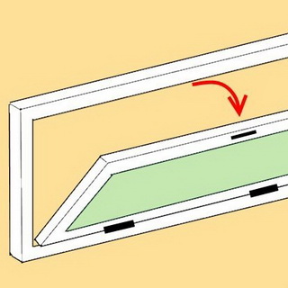 Такое окно открывается откидным способом как в вертикальной, так и в горизонтальной плоскости. Створки могут как откидываться вниз, так и открываться вверх.