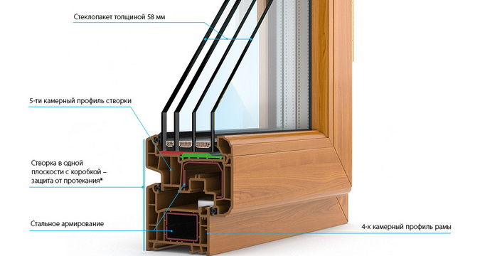Стекла в них покрыты специальной пленкой, которая обладает свойством отражать инфракрасный свет, тем самым, не выпуская тепло из дома наружу.