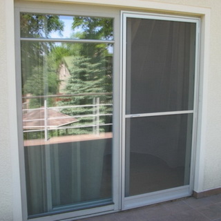 На балконные двери также ставятся москитные сетки; при этом они крепятся к раме двери боковыми петлями и фиксируются магнитной защелкой с обратной стороны. Несмотря на удобство эксплуатации, они недолговечны и через 3-4 года после установки начинают провисать. Это связано с недостаточной жесткостью стыков между тонкой алюминиевой рамой и пластиковыми уголками.