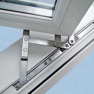 Зная о том, какая бывает фурнитура для пластиковых окон, кроме стандартного набора элементов можно приобрести специальные детали, выполняющие дополнительные функции. Например, поворотно-откидной ограничитель помогает открывать сворку и фиксировать ее на заданный угол. Таким образом обеспечивается проветривание в четырех положениях.