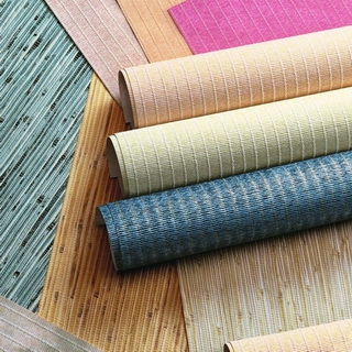 Как показано на фото, есть множество разновидностей натуральных обоев для стен – с использованием маранты, бамбука, златоцвета, магнолии, китайской крапивы, палисандра, шпона сандалового дерева и даже дерева Будды: