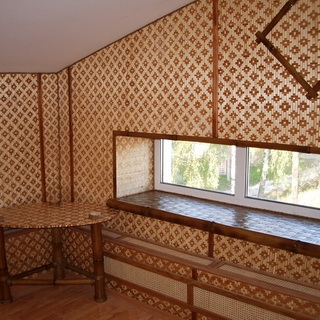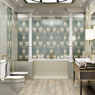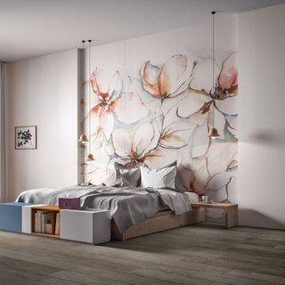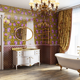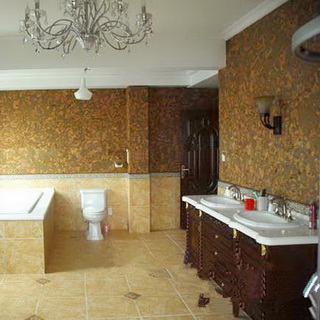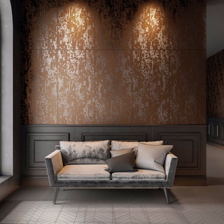 С помощью этого современного вида обоев можно отделать не только стены, но и пол. Для пола рекомендуется использовать плиты на сетке форматом 1 х 1 м и толщиной 3,5 мм. А для стен можно использовать более тонкий вариант — 3 мм и с большим периметром — 3 X 1 м или 3,6 X 1,2 м. Если у вас нет навыков работы с керамическими плитами, лучше использовать полотнища размером 0,5 X 1,5 и 1 X 1 м. С ними легко справиться даже в одиночку.