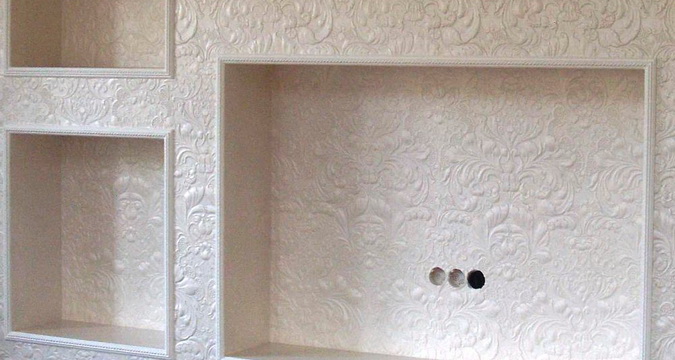 Фабричные обои также можно окрашивать самостоятельно, но тогда цвет должен быть темнее основного. Реставрационные обои используются для придания поверхности объемности, для создания рельефных узоров и т.д. Под таким покрытием можно скрыть неровности и другие дефекты стен. Особенность этого вида обоев заключается в том, что ими можно оклеивать любые поверхности — бетон, гипсокартон, штукатурку.
