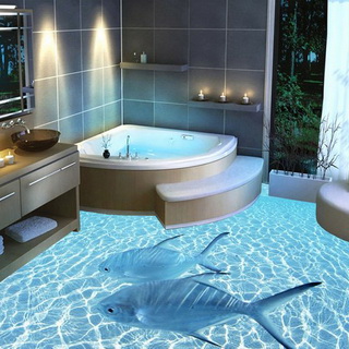 Для этого на пол наносятся декоративные картинки, которые покрываются бесцветным полимерным слоем. В итоге создается реалистичное трехмерное изображение, которое смотрится очень эффектно.