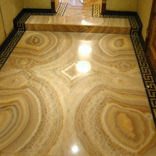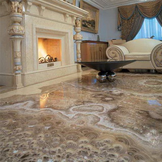 Отдельной разновидностью покрытия пола служит полупрозрачный материал пастельных оттенков, который называют «ониксом». Он отличается способностью пропускать волны света, что дает возможность создавать оригинальные формы подсветки.