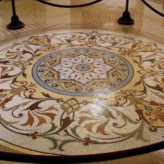 Настоящим украшением пола станет мозаичный узор, выполненный из натурального камня. Если раньше применение такой техники отличалось трудоемкостью и длительностью, то сегодняшние методы позволяют получать рисунки в промышленных условиях. Модули, поставляемые с производства, представляют собой фрагменты рисунка, наклеенные на листы бумаги или полимерную сетку.
