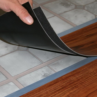 Еще одна разновидность клейкой ленты — это тканый материал, который используется в совокупности с сухой клеевой смесью на акриловой основе. Тканый материал раскладывается на полу, бумага снимается с липкой части, после чего приклеиваются рулоны покрытия. Использование ленточных систем предполагает, что основа под ними будет идеально чистой. Кроме того, в помещении не должно быть влажно.