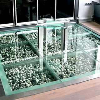 Сфера применения стеклянных полов не столь широка. Чаще всего их можно встретить в концертных залах, клубах, ресторанах, на смотровых площадках. Если вы любите все оригинальное, и пока не знаете, чем покрыть пол в квартире, обратите внимание этот вид напольных покрытий. Для современных жилых домов сегодня нет ничего невозможного, и некоторые дизайнеры предлагают устраивать стеклянный пол, к примеру, в гостиной. Для дизайнера это прекрасный способ создать неповторимый интерьер. Прозрачность пола применяется для получения светооптических эффектов, например, чтобы сделать подсветку под стеклянными блоками.