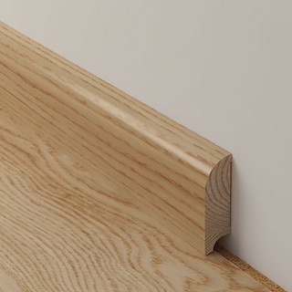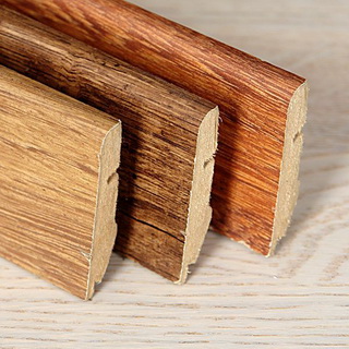 Как показано на фото, такой вид плинтусов для пола изготавливается из древесины дуба, ели или сосны: