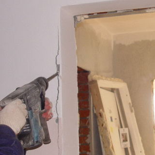 Сделав разметку, перфоратором нужно пробить по ней в стене сквозные отверстия на расстоянии около 10 см. Далее расширить проем можно с помощью кувалды или используя специальную дисковую пилу.