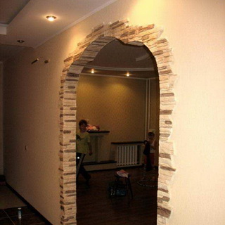 Еще одним вариантом отделки межкомнатной арки является отделка арки декоративным камнем. Такой дизайн сделает любой интерьер поистине неповторимым, но для создания подобного покрытия требуется немало сил и времени. С одной стороны, отделка декоративным камнем не требует тщательного выравнивания поверхности стен. В некоторых случаях идеально ровную поверхность желательно искусственно сделать неровной. Но одновременно могут возникнуть трудности при отделке внутренней части проема и особенно свода арки. В любом случае, если придерживаться следующих советов, выполнить отделку камнем будет проще.