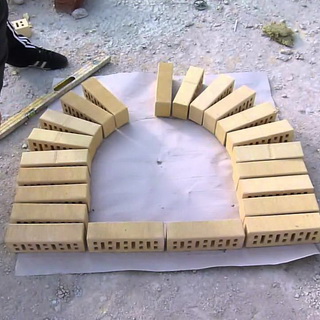 Непосредственно перед выкладкой арки по обеим сторонам проема необходимо установить штрабы, которые позволят быстро и просто зажать арку. Набор кирпичной арки должен осуществляться снизу вверх одновременно с обеих сторон. По центру в вершине арки нужно установить «замок» — кирпич, который плотно забивается в кладку и таким образом фиксирует всю конструкцию.