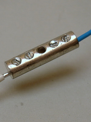 Соединение проводов с помощью клеммника применяют в распределительных шкафах. Они представляют собой закрепленную на специальных диэлектрических зажимах медную планку, которая имеет несколько отверстий для подсоединения проводов с помощью винтовых зажимов. Такой способ используется, когда необходимо соединить определенное количество проводников в одно целое, например, подсоединить несколько подходящих проводов заземления к одному общему.