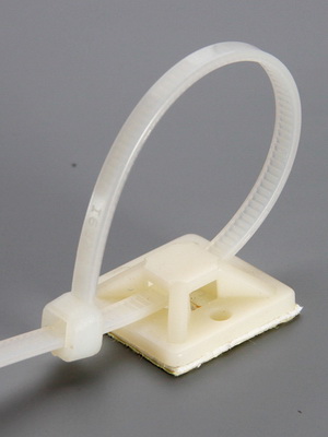 Самоклеящиеся площадки. Применяются в тех случаях, когда кабель нужно провести по декоративной поверхности, не повредив ее (например, по мебели). С подошвы площадки отклеивается слой защитной бумаги, и она прикрепляется на гладкую поверхность. Кабель монтируется к площадке с помощью хомута или специального зажима.