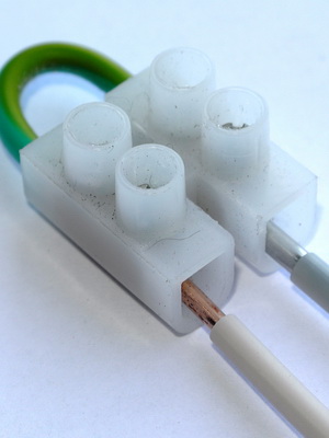 Клемные соединения проводов является наиболее безопасным и долговечным способом фиксации. Клеммная колодка — очень удобный вариант соединения большого количества проводов. Представляет собой пластиковый корпус с находящимися внутри медными винтовыми контактами.