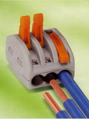 Соединения проводов клеммами пружинного типа используют для фиксации медных проводников с алюминиевыми. Оголенные концы жил вставляют внутрь клеммы, где они фиксируются пружинным зажимом.