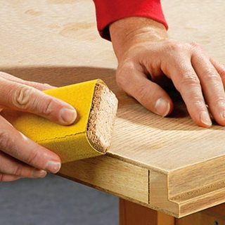 Чтобы очистить поверхность потолка и стен к окрашиванию, потребуется небольшой деревянный или пробковый брусок, который обворачивают наждачной бумагой.