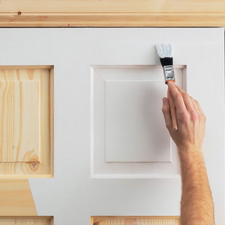 В соответствии с технологией проведения малярных работ, при окрашивании дверей краска наносится сначала в горизонтальном направлении, а затем в вертикальном.