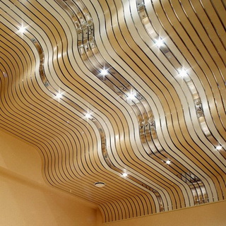 Зеркальные потолки состоят из пластин с биметаллическим покрытием, подвергнутым химической полировке.