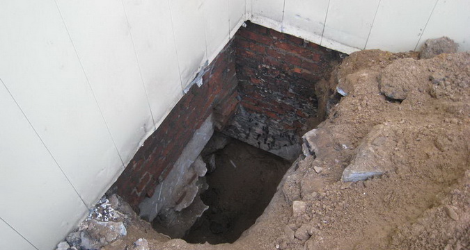 Такие ямы дают возможность оценить общее состояние фундамента – имеются ли на нем самом трещины, имеет ли место разрушение раствора между кирпичами, каково состояние гидроизоляции (и есть ли она вообще). Кроме того, с помощью шурфов легко установить, подтапливается фундамент грунтовыми водами или нет и каков их уровень – это будет видно уже через 1–2 дня по уровню наполнения водой самого шурфа.