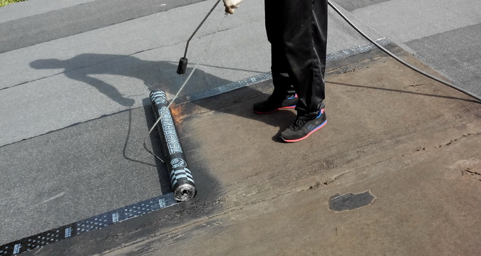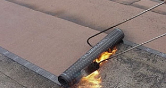 Если используется еврорубероид, можно обойтись без битумной мастики. Нижнюю часть полос надо разогревать газовой горелкой до тех пор, пока не расплавится антиадгезионная пленка. После чего материал плотно прижать к поверхности основания, аккуратно разгладить и прокатывать ручным катком или большим валиком до плотного склеивания.