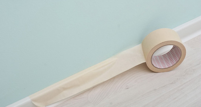 При подготовке к покраске стен внутри помещения удобнее всего использовать малярный скотч – самоклеющуюся ленту на бумажной основе. Им обклеивают все перечисленные элементы, а также обозначают границы покраски на потолке. После окрашивания скотч с легкостью удаляется.