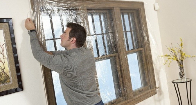 Крепить пленку легко. Перед тем как утеплить старое окно, его нужно замерить и отрезать полотно пленки с припусками 2–3 см с каждой стороны. Затем по периметру фиксируют ее двухсторонним скотчем и аккуратно закрепляют на оконной раме.