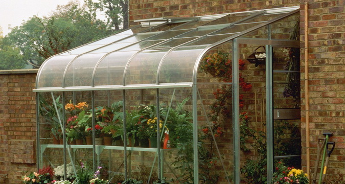 Поскольку выполнять такие требования не всегда удается из-за ограниченности места, то стоит подумать об установке теплицы с южной стороны дома. Для соблюдения условий по необходимой освещенности растений такой вариант будет оптимальным. Теплицы, пристраиваемые к стене с южной стороны дома, неплохо показывают себя по уровню экономии тепла в зимнее время, легкодоступности подхода к растениям (что особенно очевидно при наличии входа из дома напрямую в теплицу) и, естественно, освещенности.