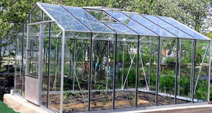 Прежде всего необходимо вспомнить о столь любимом многими стекле, которое еще не так давно было единственным видом покрытия. В тепличных конструкциях применяют обычное оконное стекло. Его преимущества: отлично пропускает свет, легко приобрести, долго прослужит при правильном подходе, просто поддерживать его чистоту. Минусы у этого материала для изготовления теплицы тоже имеются: стекло хрупкое – трескается в самое неподходящее время, плохо держит тепло, что приводит к ощутимым теплопотерям. Стекло нужно монтировать в рамах таким образом, чтобы отсутствовали щели. Обычно качественная герметизация обеспечивается замазкой. Конечно, она высыхает, постепенно разрушается и теплице требуется ремонт. Если тратить время на ремонт неохота, то можно прибегнуть к способу остекления без замазки. Современная промышленность производит тепличные наборы, в которых стекло вставляется в специальные пазы шпросов, что существенно облегчает установку конструкции и последующую ее эксплуатацию, хотя и характеризуется несколько более высокой теплопотерей из-за отсутствия полной герметичности. Выбирая материал, каким лучше покрыть теплицу, не забывайте, что именно проблема сохранения тепла является самой актуальной для сооружений со стеклами. Вариантом ее решения способно стать конструирование каркаса с двойным остеклением. В таком случае теплопотери уменьшаются на 36 %, но в то же время заметно увеличивается конечная стоимость теплицы, поскольку стеклопакеты обходятся недешево. У них между стеклами имеется герметичная полость, представляющая собой замечательный теплоизолятор. Если есть возможность, то лучше отдать предпочтение именно спаренным стеклянным элементам, но тогда и всю тепличную конструкцию логично выполнить из дорогих и эффективных современных материалов.
