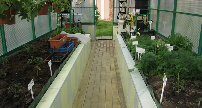 Удобные дорожки вокруг и внутри теплицы показаны на этих фото: