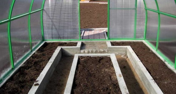 Под большинство теплиц фундамент требуется заливать ровный и твердый, за исключением достаточно маленьких конструкций с алюминиевым каркасом не более 2 м в ширину и 2,5 м в длину – такие сооружения можно устраивать прямо на голом грунте с закреплением конструкции по углам.