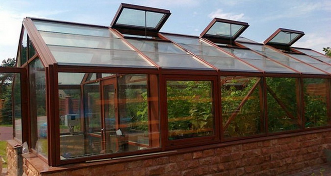В стандартном варианте теплицы имеют 1 форточку на стене и 2 на крыше. Но этого обычно не хватает. На стенах должны быть, по крайней мере, 2 фрамуги, расположенные как можно ниже, и 2 на крыше (по 2 на каждый скат, если она 2-скатная). В конструкциях с алюминиевым каркасом монтировать форточки можно на любом этапе их сооружения, тогда как в деревянных это надо делать до остекления.