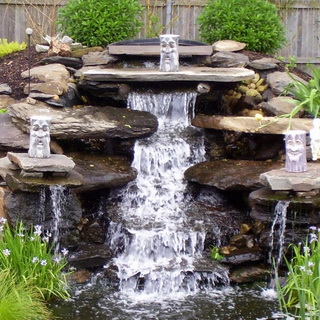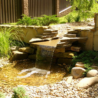 Сооружение искусственных водопадов на даче требует специальных навыков. Объект надо устроить так, чтобы вода стекала с водосливного камня красивым потоком, а ее брызги или струи полностью охватывались бассейном и руслом водопада. Иначе будет заболачиваться территория и размываться почва вокруг водопада.