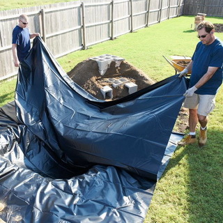 Все элементы водопада необходимо установить одновременно с устройством водоема. Для гидроизоляции ложа лучше использовать гибкие водонепроницаемые пленки: искусственный каучук или гидроизоляционные мембраны TROCAL, которые позволяют быстро организовать покрытие в водоемах любых типов, форм и размеров. Отдельным листом пленки требуется выложить каждый бассейн водопада. Все соединения промазать герметиками.