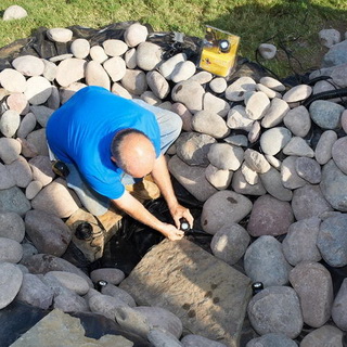 Завершив монтажные работы, можно выполнить дизайн окружающей местности и подножия дачного водопада, используя: валуны различных форм, речную или морскую гальку, доломит, известняк.