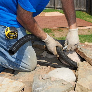 Выбор насоса зависит от желаемых мощности и размеров декоративного водопада, чтобы агрегат подавал оптимальный объем воды. Скорость потока зависит от объема воды и высоты, на которую предполагается ее поднимать.Для устройства водопада на даче ориентировочно насос лучше подобрать из следующего расчета: пропуск воды по 225 л/ч на каждые 2,5 см ширины ложа. Воду в верхний резервуар водопада подают по гибкому армированному шлангу из главного бассейна с помощью погружного насоса. Насос нужно опустить на подставку в водоем, гибкий шланг надеть на сопло насоса. Незаметно проложить электрический кабель. Затем шланг через край вывести под выступом нижнего бассейна – в этом месте он не будет виден. Под краями резервуаров водопада подвести шланг к верхнему бассейну, здесь перекинуть через его край и осторожно, чтобы не повредить, замаскировать камнями.