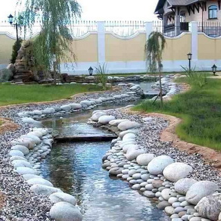 На этих фото показаны красивые ручьи на даче, созданные своими руками: