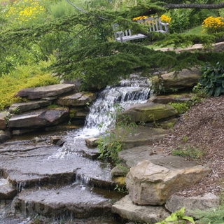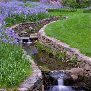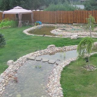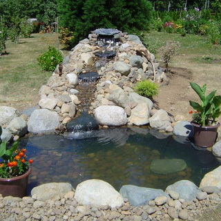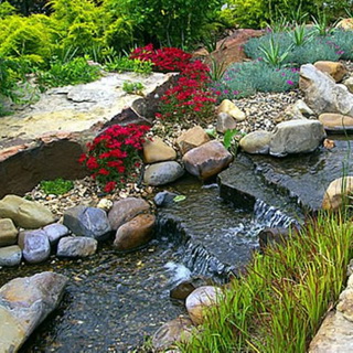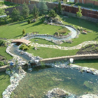 Искусственные ручьи, родники и водопады на даче – это водные объекты с движущейся водой, придающие пейзажу своеобразную красоту. Весело журчащая вода приятна слуху человека и улучшает своим движением микроклимат сада, неся влагу сухому воздуху, – текущая вода быстрее испаряется. Вода в движении очищается и насыщается кислородом. Поэтому при благоустройстве территории сада можно дополнить водоем каскадом или ручьем. Искусственный пруд обретет большую естественность, если в него будет впадать шаловливый ручей, прыгающий по камням. Воду можно пустить по каменным ступенькам, поросшим растениями; сбегающий по ним ручей выглядит очень естественно.