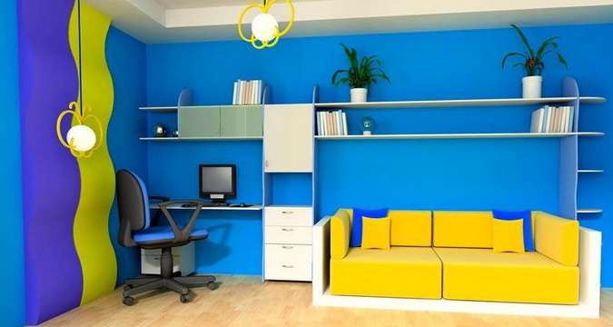 Гармоничное сочетание разных цветов в окраске стен