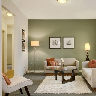 Композиция цвета окраски стен составляется в соответствии с рекомендациями, приведёнными в статье выше. О том, что может получиться на практике, смотрите ниже.