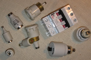 Предохранители защищают потребителей от перегрузок в сети — сверхвысоких токов и коротких замыканий. К ним относятся пробки и плавкие вставки, применяемые в распределительных щитах. Предохранители бывают одноразовые и многократного использования.