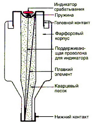 Принцип работы электрической пробки прост: при прохождении тока высокого напряжения через тонкий проводник внутри стеклянной трубки он расплавляется, и цепь разрывается. Пробка при этом перегорает. Достоинство пробки очевидно: ее работа зависит от физических свойств материалов, а не от работы механических устройств. К недостаткам относится то, что раз сработав, она нуждается в замене перегоревшего элемента.