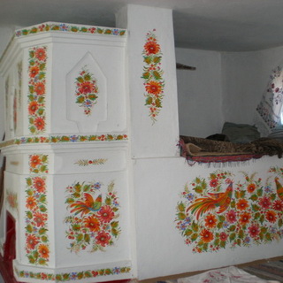 Посмотрите фото покраски печей – продемонстрированы разные варианты декора с помощью краски: