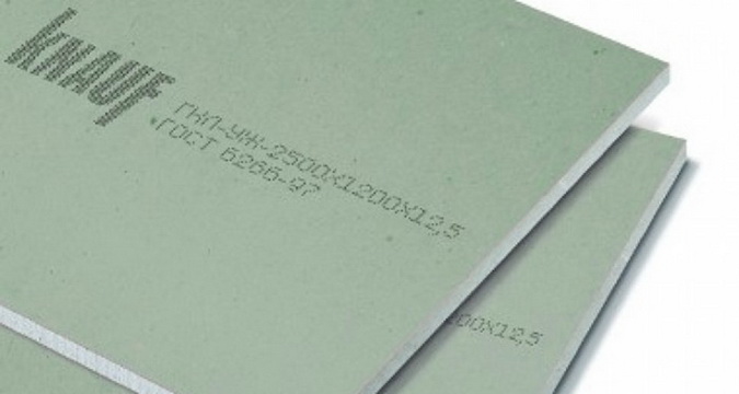 К этой категории относится влагостойкий гипсокартон «Кнауф». Его применяют в помещениях, где влажность выше допустимой нормы и где потолок будет подвержен активному воздействию влаги (ванная, туалет, кухня). Кроме того, этот материал спокойно может перенести возможное затопление сверху.