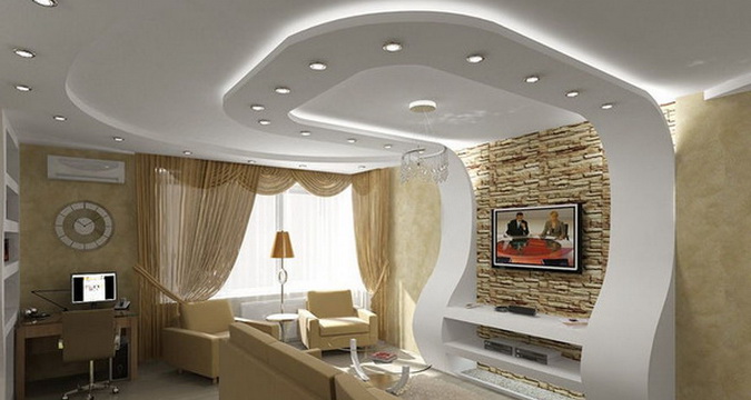 Кроме этого, гипсокартон считается очень гибким материалом, поэтому из него можно создавать разнообразные геометрические формы, украшать им арки, ниши, проемы, делать двух- и многоуровневые потолки.