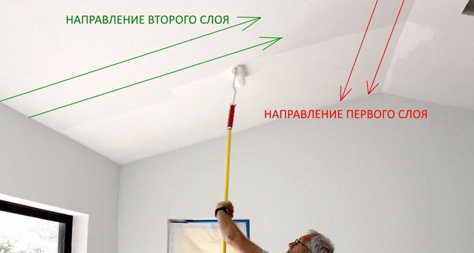 Для получения более качественного результата следует наносить побелку в несколько слоев (2-4). Это позволит сделать общий слой более толстым, что, в свою очередь» поможет более удачно скрыть небольшие дефекты потолочного покрытия.