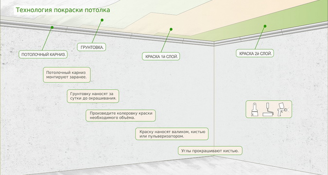 Кювета Как показывает практика, правильно покрасить потолок водоэмульсионной краской своими руками несложно, а если использовать цветную краску, можно добиться идеального сочетания с общим дизайном помещения.