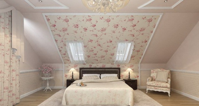 В настоящее время выпускаются специальные потолочные обои. Они разнообразны по фактуре, цвету и рисунку, благодаря чему можно выбрать наиболее подходящий вариант, сочетающийся с общим дизайном квартиры или дома.