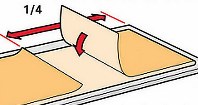 При наклеивании обоев удобнее это делать, сложив полотнище гармошкой и разворачивая его по мере приклеивания. Перед наклеиванием нужно нанести клей на первое полотнище, сложить его гармошкой, следя за тем, чтобы его лицевая сторона не касалась клея.