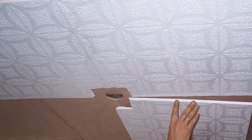 До того как крепить пластиковые панели на потолок, необходимо сделать в них отверстия, в которые будут вставляться дюбели. Далее нужно уложить материал перпендикулярно брусьям обрешетки и зафиксировать его дюбелями. Чтобы сделать такой потолок звуконепроницаемым, можно проложить шумоизоляционный материал между рейками обрешетки под потолочной основой, затем закрыть все панелями.
